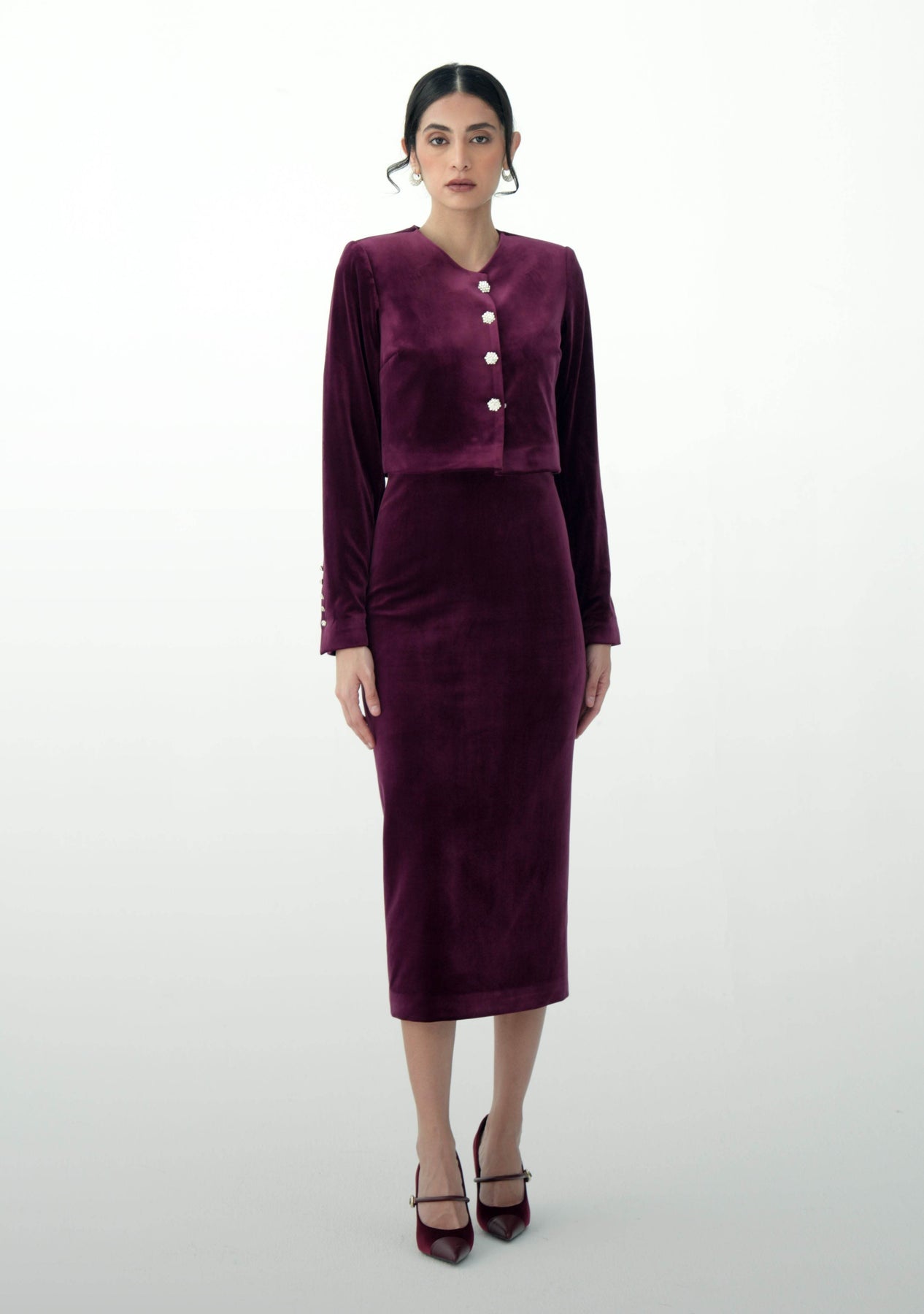 Introducing the Royal Wine Dress, a timeless creation that perfectly combines elegance and simplicity. This midi-length dress is crafted from luxurious velvet fabric, showcasing a rich, wine-colored hue that radiates sophistication. The fabric's soft, plush texture and subtle sheen give the dress an opulent feel, ideal for any special occasion.