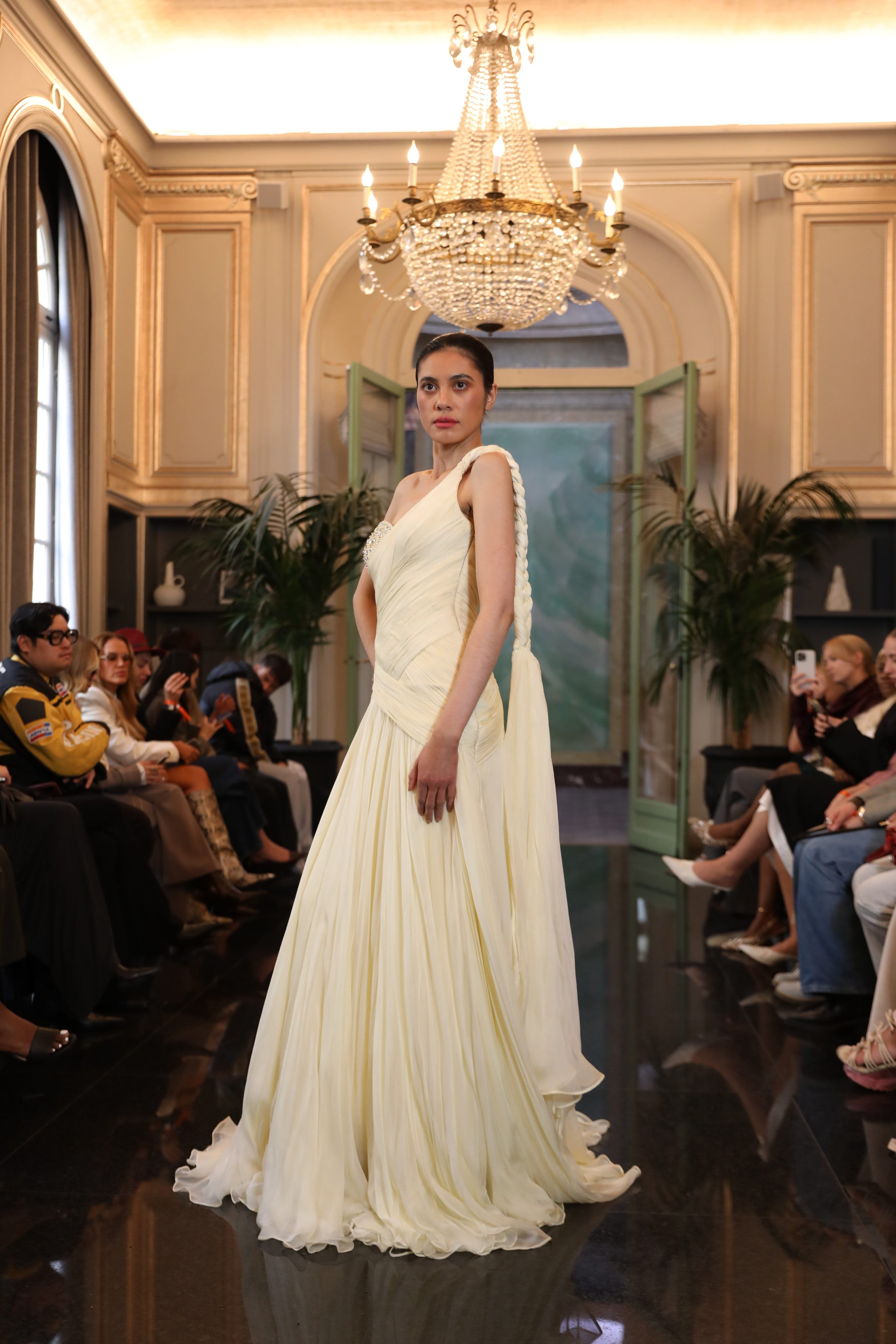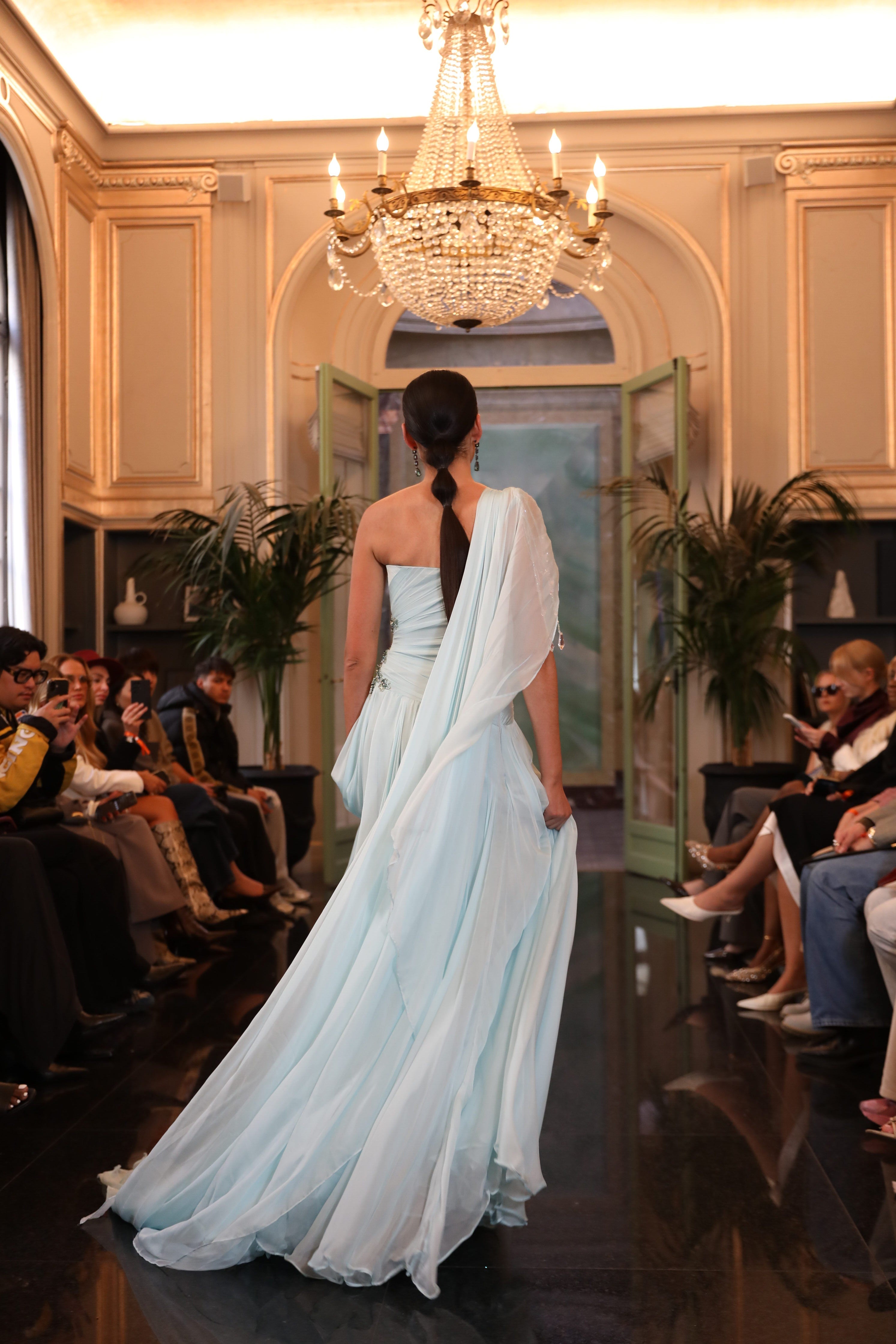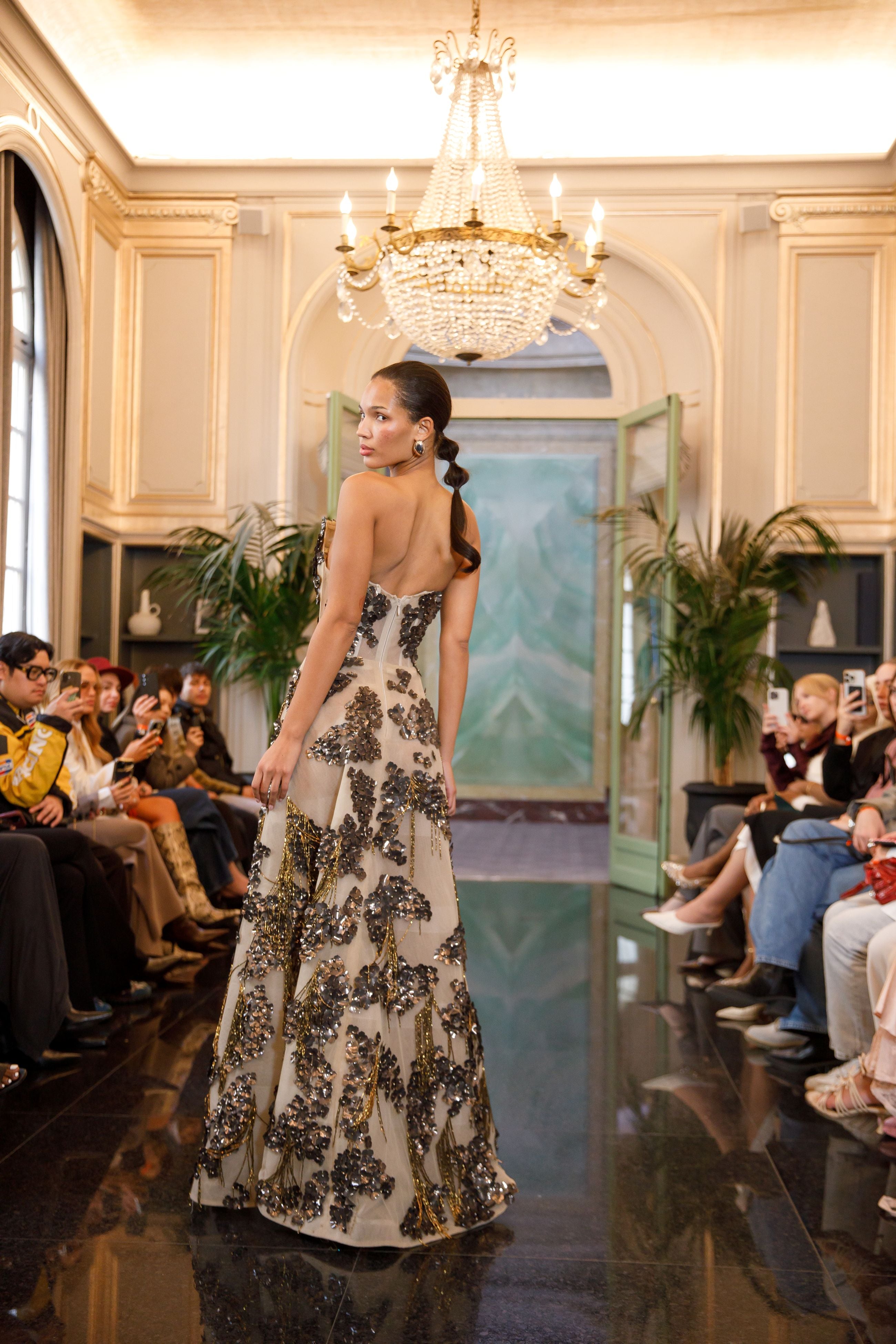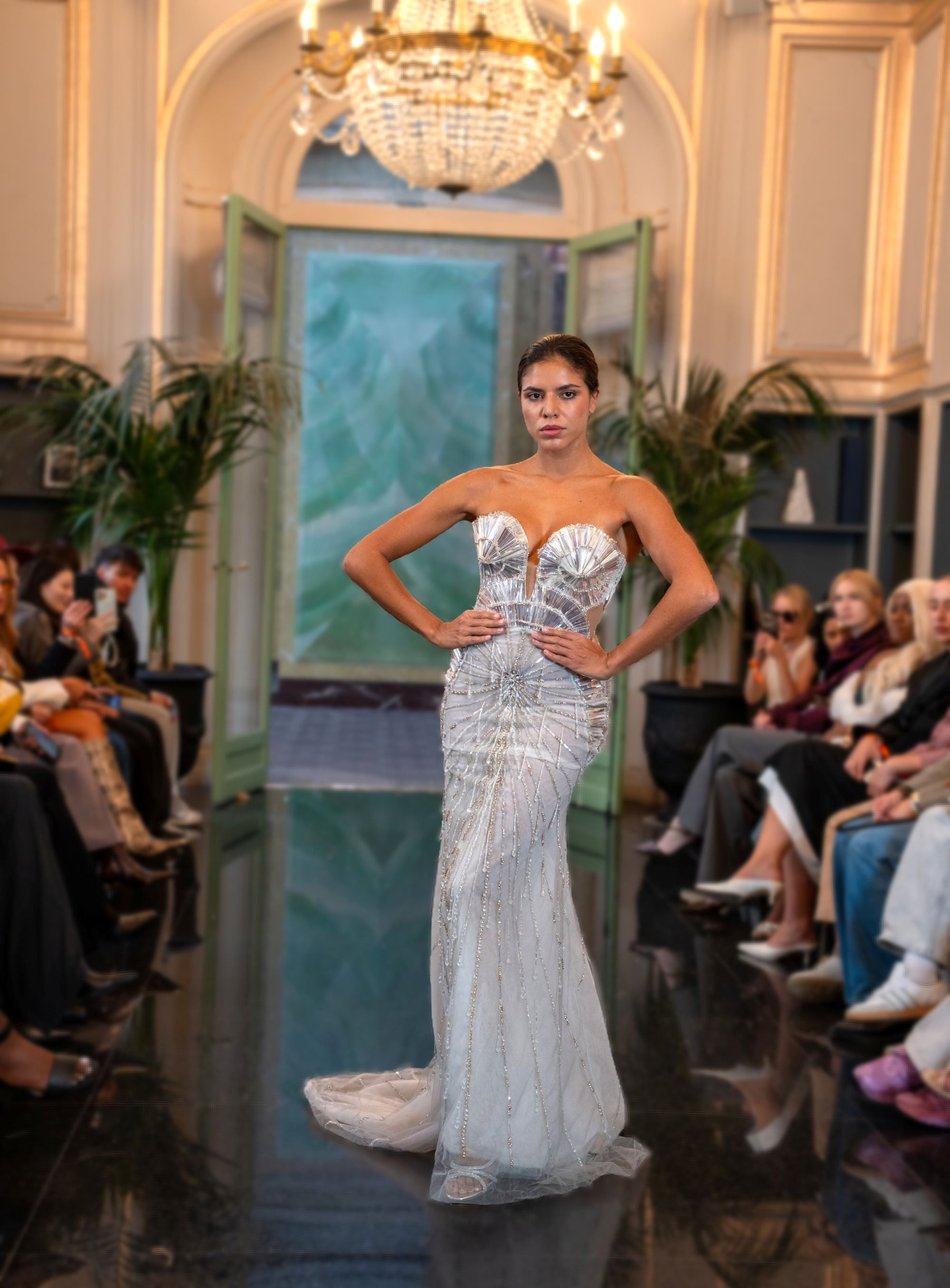 A couture symphony of light, handwork, and divine femininity. Each gown reflects the Moonmains woman: powerful, luminous, and eternal.
