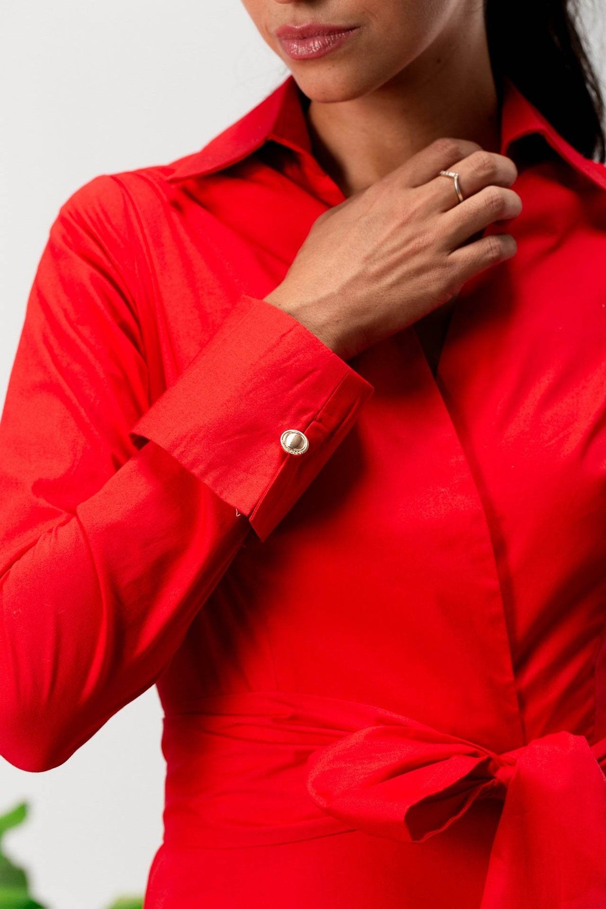 This stunning dress features a flattering V-line neckline paired with a shirt-like standing collar and long shirt sleeves, adding a touch of classic style. The long belt with a charming bow accentuates the waist, creating a unique design element that sets this dress apart. Tailored for a sleek and stylish fit, this dress is ideal for special occasions where you want to leave a lasting impression.